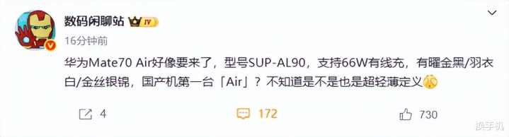 不属于Mate80系列!华为首款Air,即将登场!你觉得Mate70 Air怎么样,会考虑将这款手机,作为你的“第一台Air”吗?