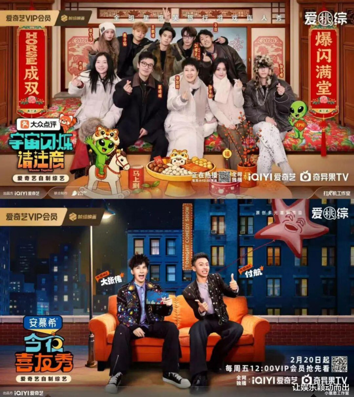 在综艺侧,开年爆综《宇宙闪烁请注意》春节期间播出亚布力站内容,解锁东北特色年味,和观众一起热热闹闹过大年;大年初四上线的新喜综《今夜喜友秀》作为春节长假中场的“快乐补给”,成为年轻人的嘴替,大张伟和付航领衔送上的“快乐轰炸”也成为节日期间高频转发的“年货”。
